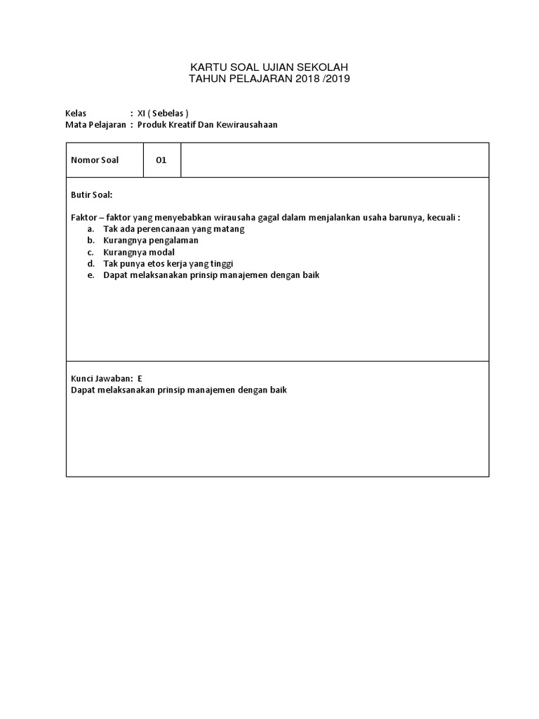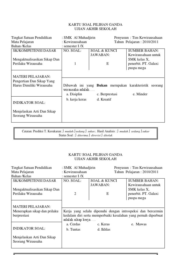 Dokumen Tips Kartu Soal Ujian Sekolah Kewirausahaan