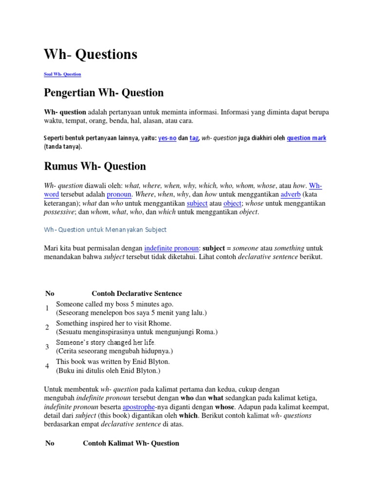 Soal dan jawaban tentang microsoft word. Contoh soal wh question beserta jawabannya Macam-Macam WH Question Words Pada Indirect Speech Dan Contoh Kalimat Lengkap. Isnt that isnt it 2.