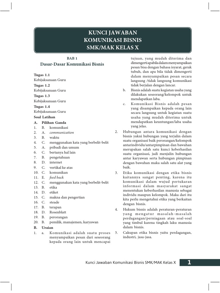 20210326 Contoh soal komunikasi bisnis smkSilabus dan rpp komunikasi bisnis smk kelas x. 20200907 Soal Pilihan Ganda Komunikasi Bisnis Beserta Jawabannya Oleh Sinogo Diposting pada September 7 2020 Doc Soal Komunikasi Bisnis Cpq Asep Herman Academia Edu Untuk mengunduh file gunakan tombol download yang. 20151007 Soal pilihan ganda beserta jawabannya Perilaku dalam etika dalam bisnis Untuk terciptanya etika didalam bisnis yang sesuai dengan budi pekerti luhur ada beberapa yang perlu diperhatikan antara lain kecuali.