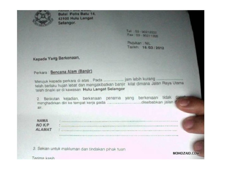 Contoh Laporan Kejadian Banjir