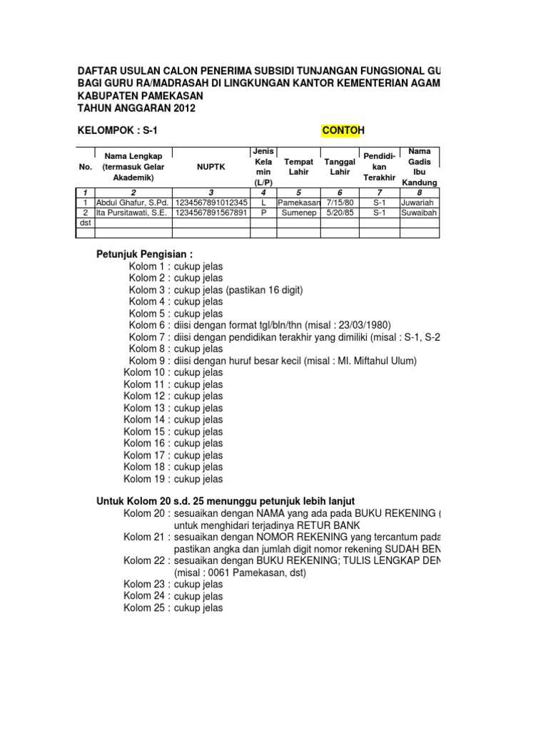 Juknis tunjangan fungsional guru non pns 2016. Jatim dengan menggunakan Format 2. Sehubungan dengan hal tersebut kami harapkan bantuan Saudara untuk mengirimkan Daftar Usulan Subsidi tunjangan fungsional guru Non PNS format terlampir.