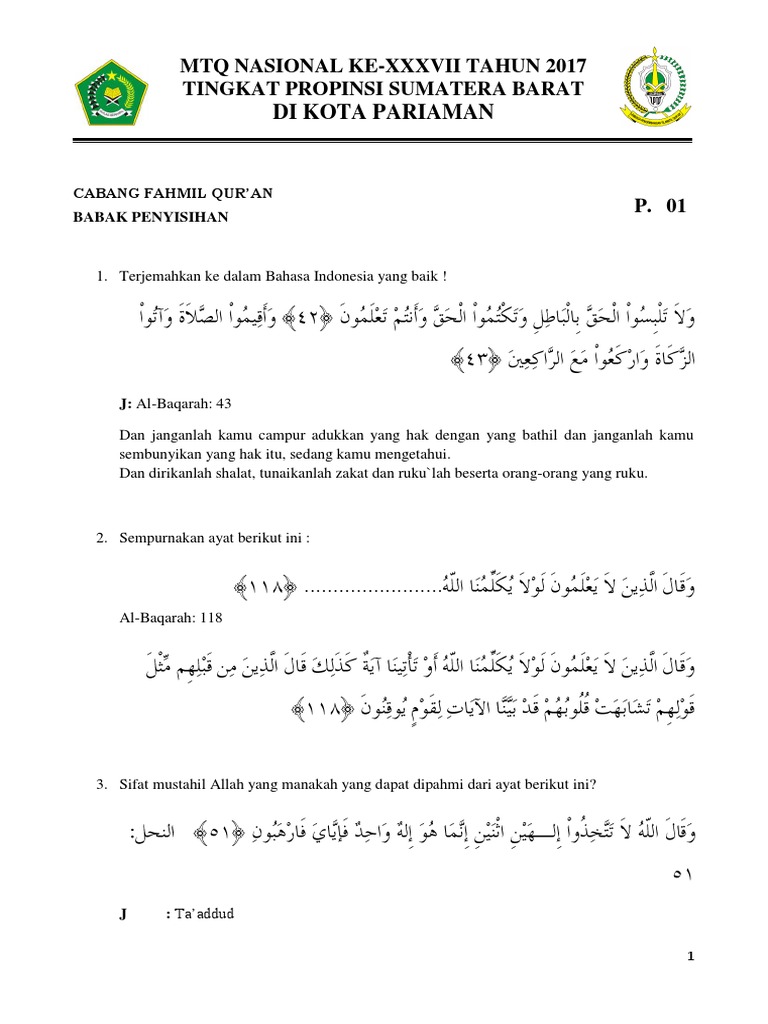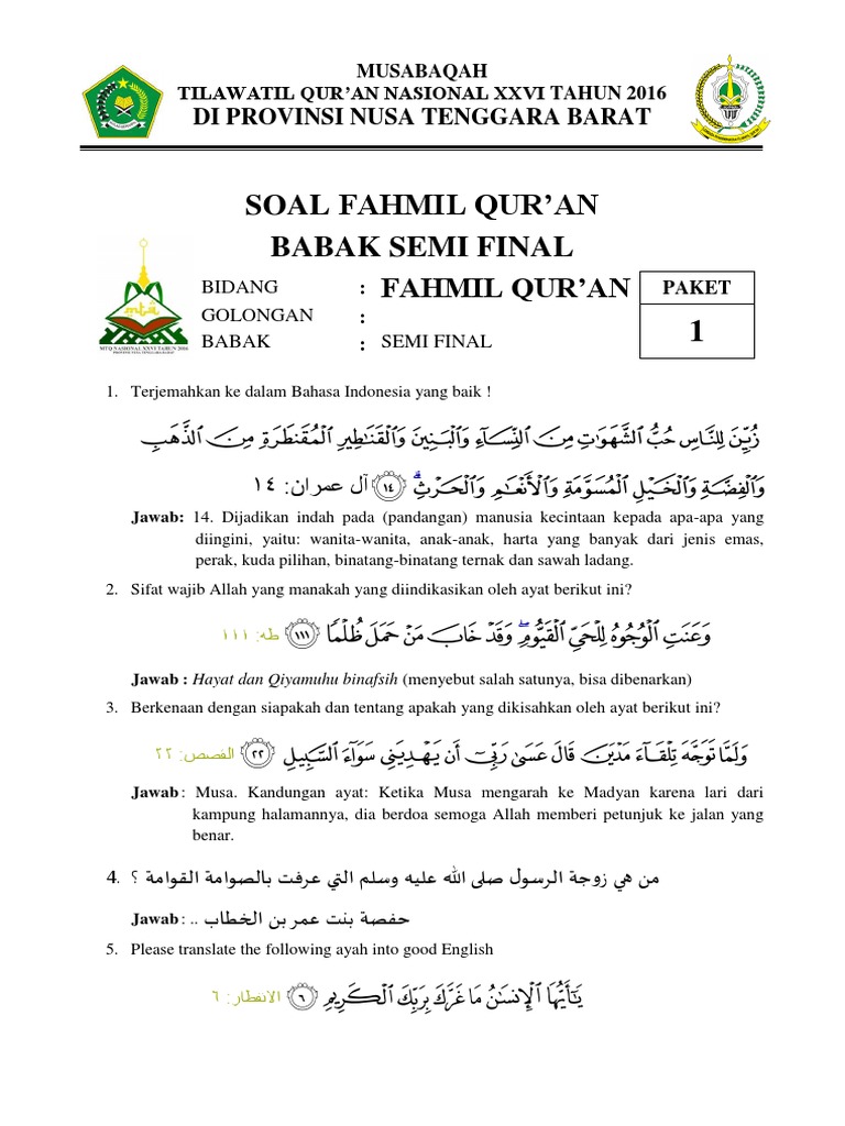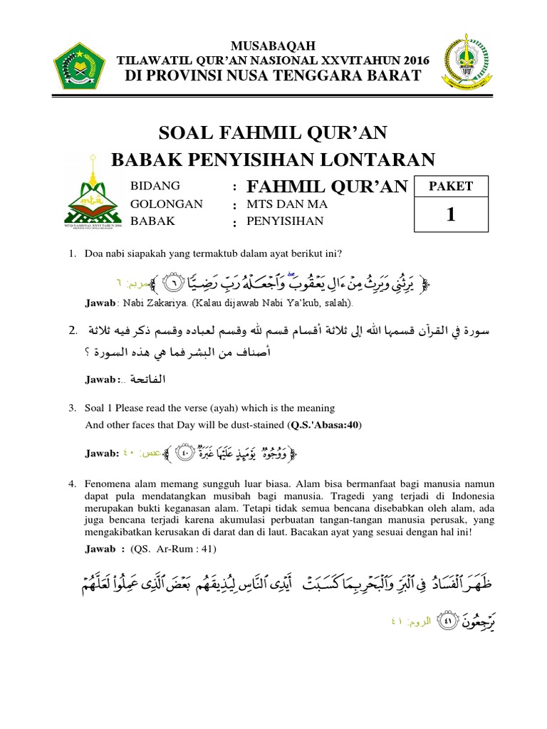1 Paket Soal Fahmil Qur An Penyisihan 1 Pdf