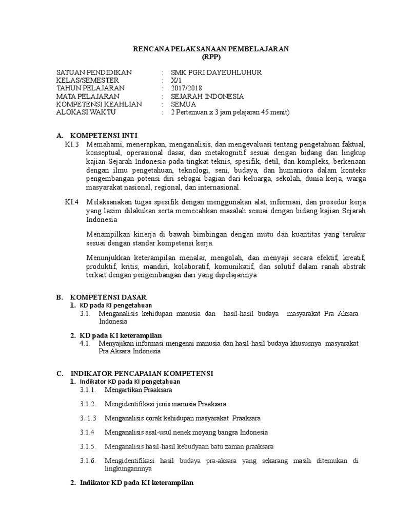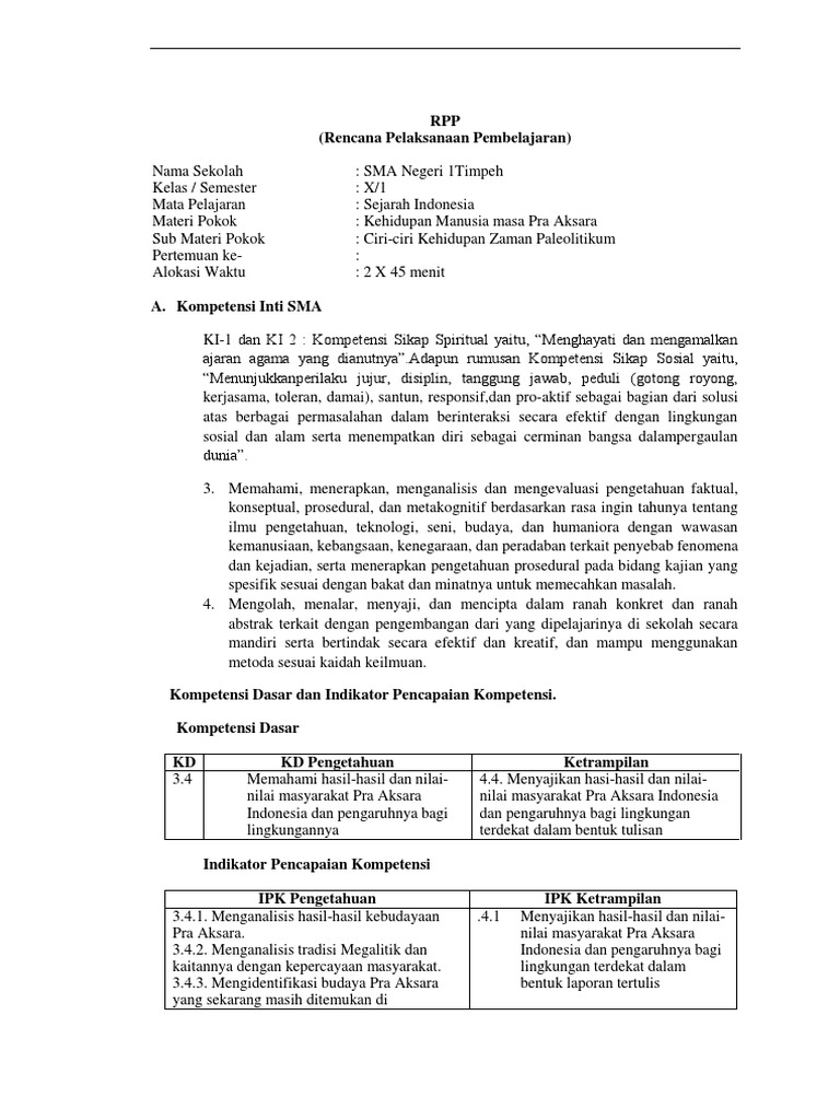 Rpp zaman pra aksara. Deskripsikan kurun waktu zaman praaksara secara kronologis. Satu satunya sumber untuk mengetahui kehidupan manusia purba hanya melalui peninggalan peninggalan mereka yang berupa fosil alat alat kehidupan dan fosil tumbuh tumbuhan maupun hewan yang hidup dan berkembang. 4 2 menyajikan hasil penalaran mengenai corak kehidupan masyarakat pada zaman praaksara dalam bentuk tulisan.