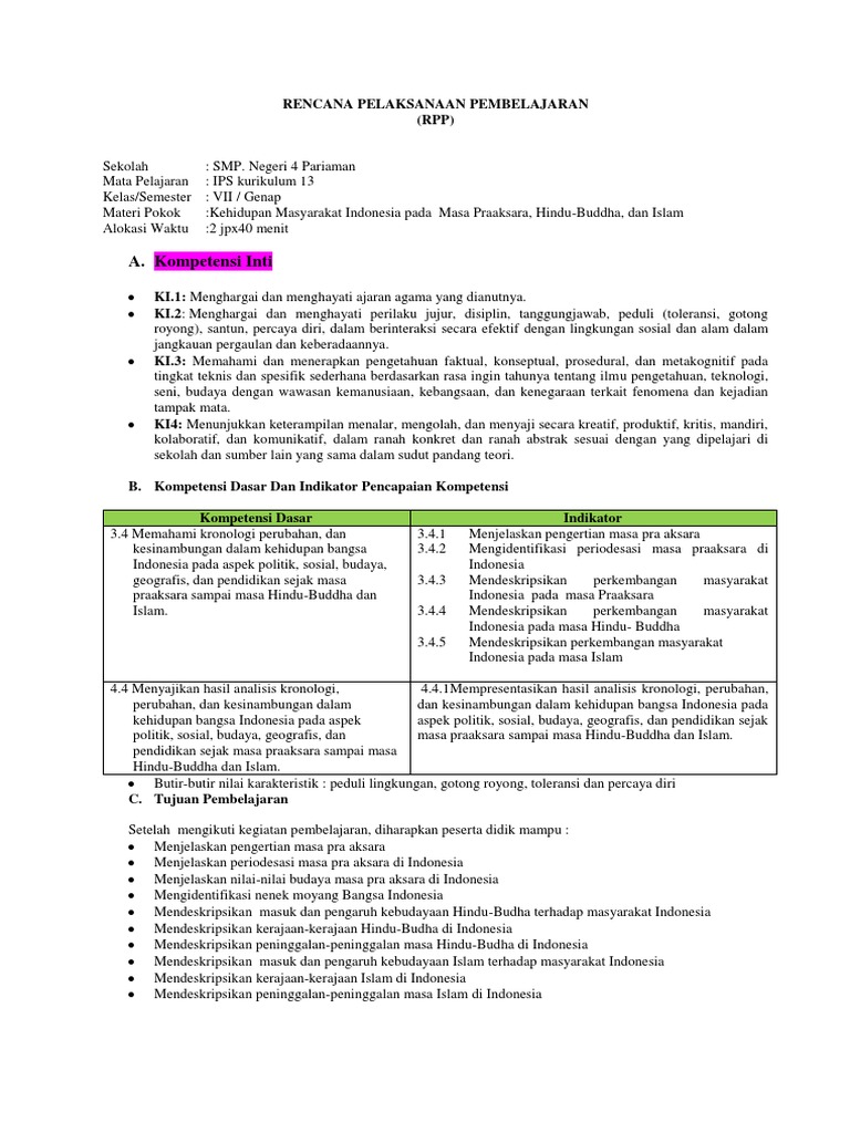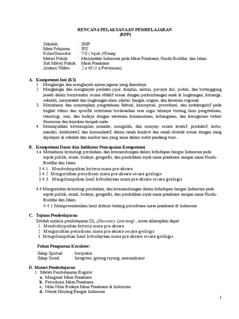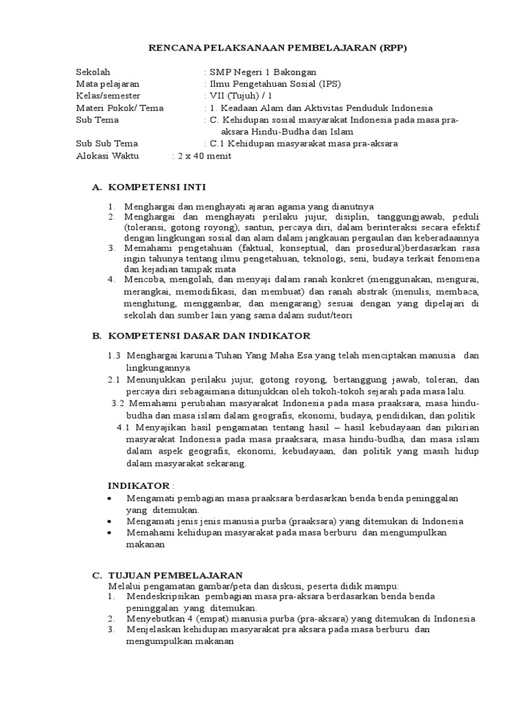 Bagi bapak ibu yang sedang mencari rpp tentang pra aksara ini ada contoh rpp pra aksara untuk smp kelas vii. Pada masa ini kita tidak dapat mengetahui sejarah serta kebudayaan manusia melalui tulisan. 2 1 menunjukkan sikap tanggungjawab peduli terhadap berbagai hasil budaya pada zaman pra aksara hindu buddha dan islam.