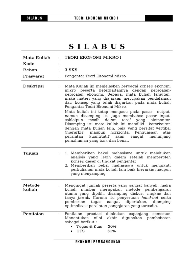 Silabus Teori Ekonomi Mikro 1 Bs Doc