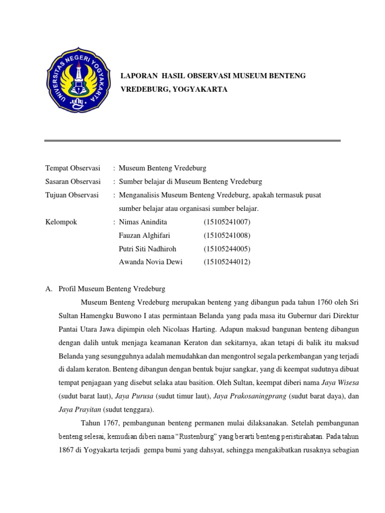 Laporan Hasil Observasi Museum Benteng Vredeburg
