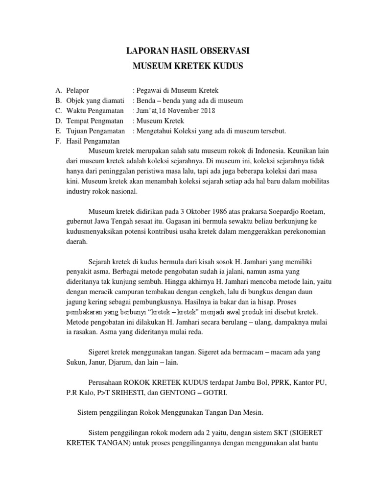 Contoh Hasil Observasi Museum Contoh Nyah Cute766