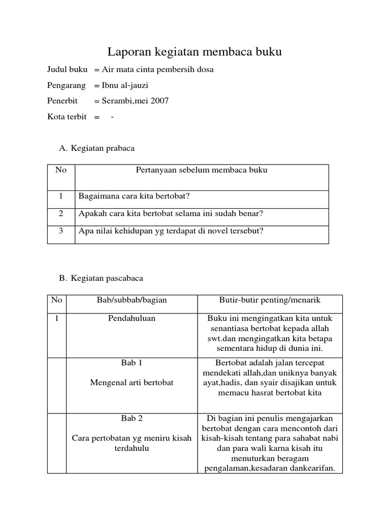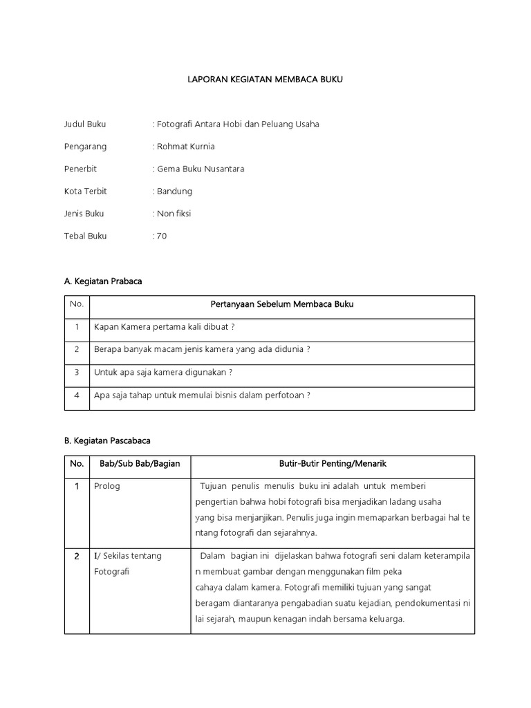Contoh Tugas Laporan Literasi Buku fiksi Bahasa Indonesia By admin Posted on 22062019. Berhubung lagi ada waktu luang gw mau share lagi salah satu tugas gw kali ini mata kuliah Bahasa Indonesia 2. Baik itu laporan percobaan maupun laporan kegiatan.