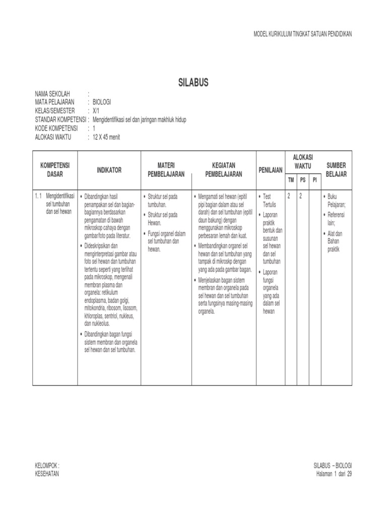 SILABUS BIOLOGIKESEHATAN Halaman 1 dari 44. Menghayati dan mengamalkan perilaku jujur disiplin tanggungjawab peduli gotong royong kerjasama toleran damai santun responsif. Yang bisa digunakan untuk melengkapi administarsi guru yang dapat di unduh secara gratis dengan menekan tombol download.