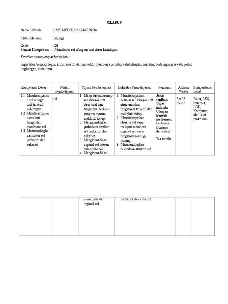 Doc Silabus Biologi Smk Kairav Prasetya Academia Edu