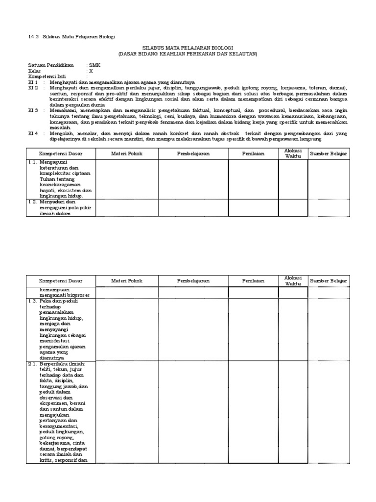 Silabus Biologi SMK Kesehatan Kurikulum 2013 Oleh Mas Yog 10 Nov 2016 1 komentar Link download ada di bawah KI 1. Soal berikut adalah soal yang disusun berdasarkan bedah kisi oleh pak anang dan dengan mengamati bahwa soal un tahun ini terdapat soal isian singkat maka pada soal. Silabus biologi smk pertanian kurikulum 2013.