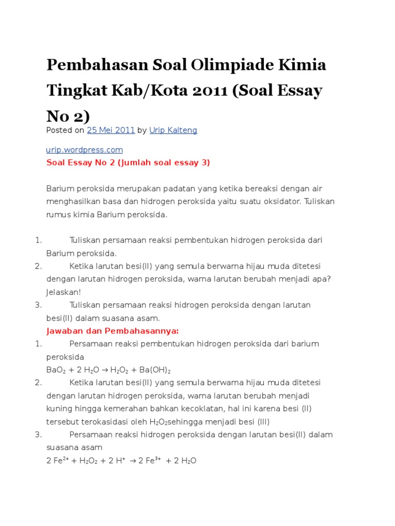 Soal essay olimpiade kimia sma. Science Competition Expo SCE 2019 telah selesai dilaksanakan beberapa waktu yang lalu yaitu tepatnya pada hari Sabtu tanggal 05 Oktober 2019 di dua tempat yaitu di Universitas Sumatera Utara USU dan Pardede Hall Medan. Semua orang hidup terikat dan bergantung pada pengetahuan atau persepsinya sendiri itulah kenyataan. Nomor lain nanti silakan klik tautan yang terdapat pada bagian akhiri pembahasan ini.