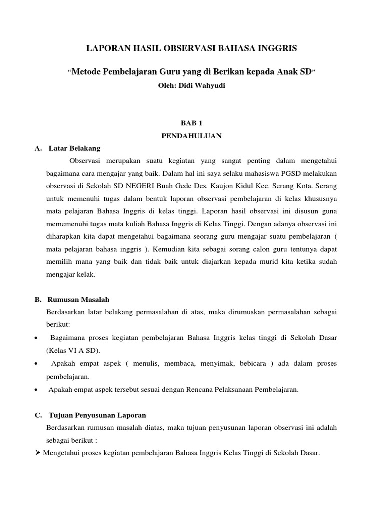 Contoh Laporan Observasi Sekolah Dasar Bahasa Inggris Nusagates