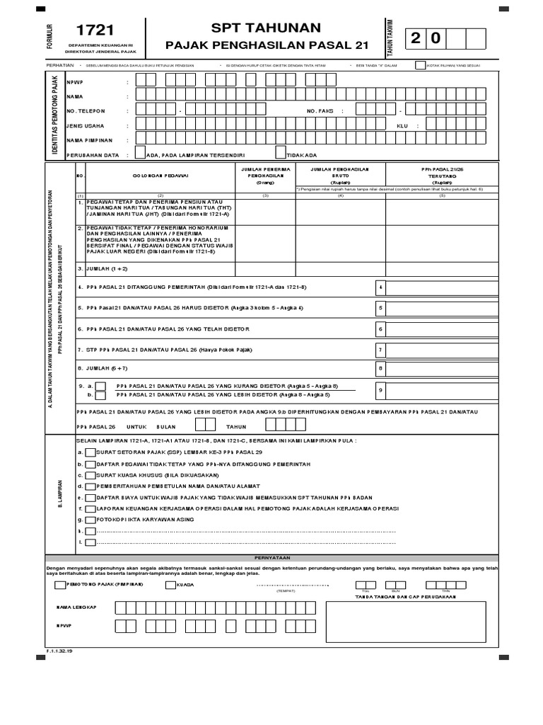 15 Formulir 1721 Spt Tahunan Pph 21 1 Pdf