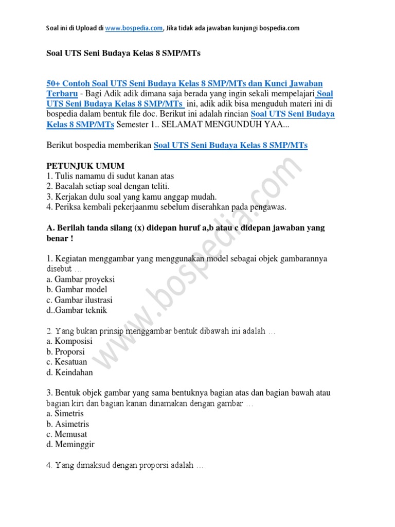50 Contoh Soal Uts Seni Budaya Kelas 8 Smp Mts Dan Kunci Jawaban Docx