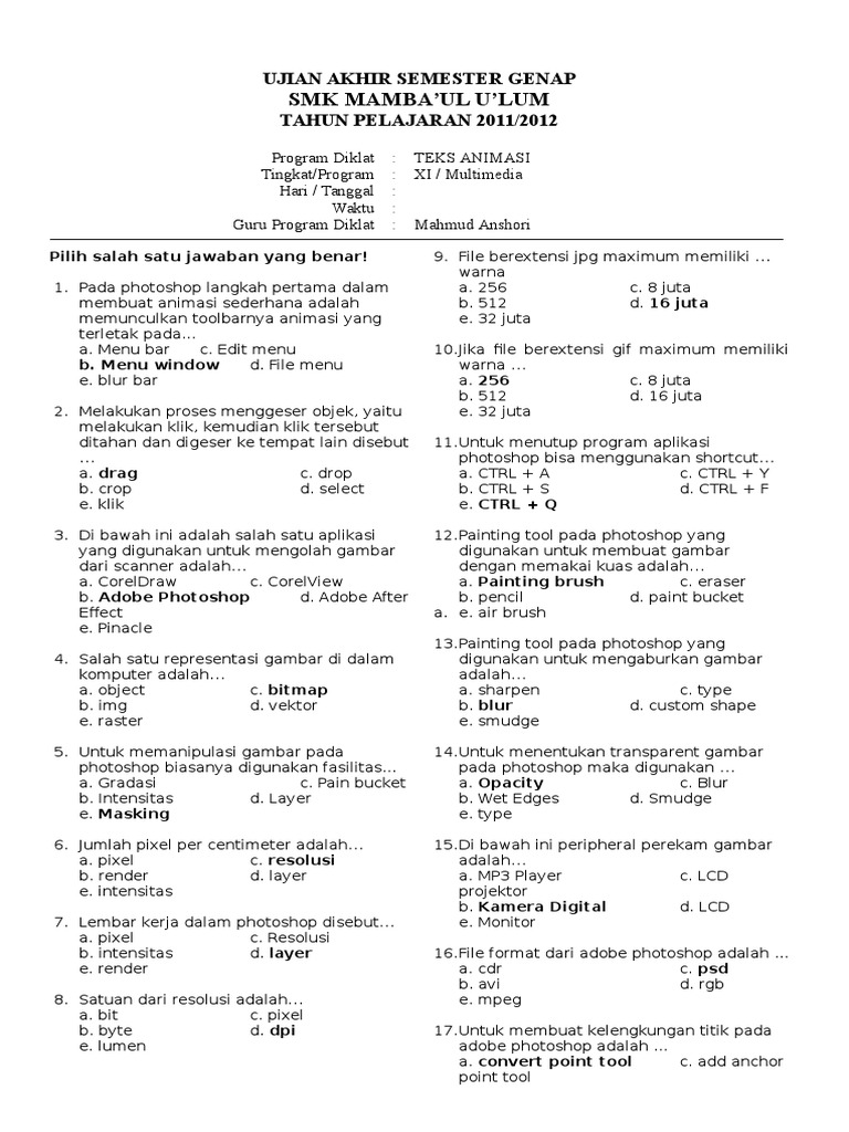 Animasi umun dan animasi khusus. SOAL dan JAWABAN UAS SMK MULTIMEDIA 2016 1. Action script animasi 2d animasi 3d latihan soal macromedia flash multimedia pas produktif smk soal teknik animasi 2d dan 3d uas.