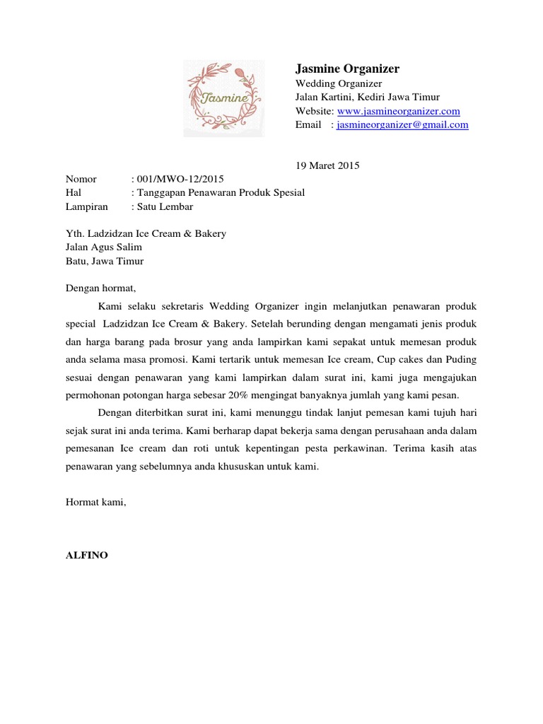 Contoh proposal penawaran wedding organizer is free hd wallpaper. Contoh Surat Balasan Wedding Organizer - undanganme - untuk mendapatkan informasi tentang Contoh Surat Balasan Wedding Organizer langsung saja klik link ini disini apabila artikel tidak relevan silahkan cari artikel yg relevan pada web ini. Buatlah Surat Balasan Terhadap Surat Penawaran Ladzidzan Ice Cream.