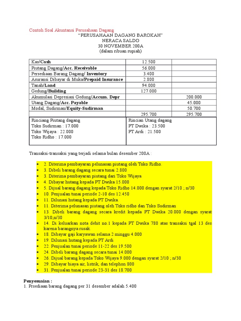 Contoh Soal Akuntansi Perusahaan Dagang Beserta Jawaban Pdf Dapatkan ContohPos.