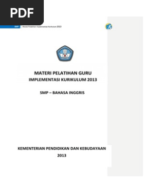 IMPLEMENTASI KURIKULUM 2013 MATA PELAJARAN BAHASA INGGRIS DI SMP NEGERI 9 MADIUN Dian Nashrul Munif Sekolah Tinggi Agama Islam STAI Madiun E-mail. Modul Pelatihan Guru Bahasa dan Sastra Inggris SMA Kurikulum 2013 ini diterbitkan oleh Direktorat Pembinaan Sekolah Menengah Atas - Kementerian Pendidikan dan Kebudayaan Tahun 2018. Modul ini disusun dan diterbitkan oleh Direktorat Pembinaan SMP - Direktorat Jenderal Pendidikan Dasar dan Menengah - Kementerian Pendidikan dan Kebudayaan Tahun 2018.