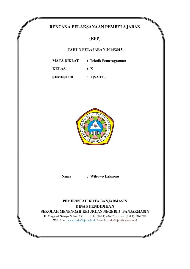 Wibowo Laksono PEMERINTAH KOTA BANJARMASIN DINAS PENDIDIKAN SEKOLAH MENENGAH KEJURUAN NEGERI 5. Rpp teknik pemerograman semester 1 teknik elektronika kurikulum 2013 1. Memahami komponen aktif Alokasi Waktu.