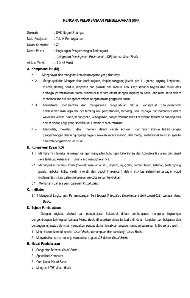 Kompetensi Kejuruan Elektronika Industri KelasJurusan. Menurut wikipedia rencana pelaksanaan pembelajaran atau jika di singkat rpp adalah pegangan guru dalam mengajar di kelas. RPP Silabus Kunci Jawaban.