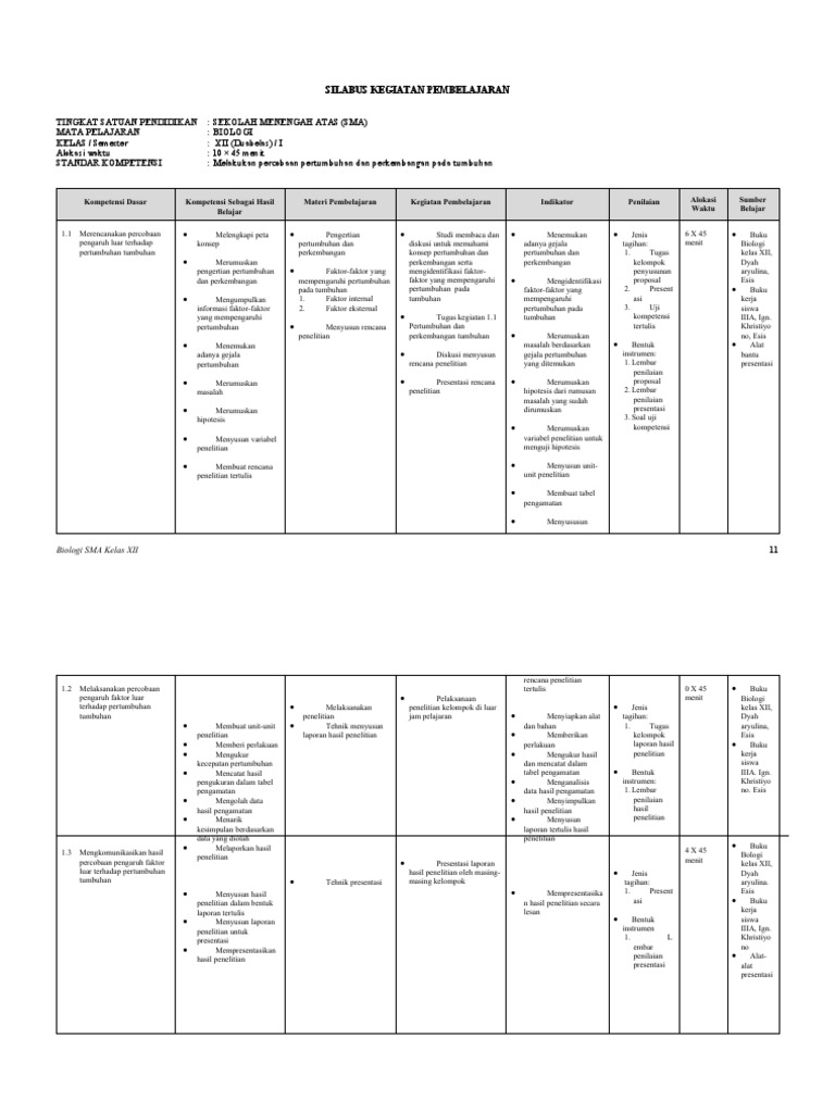 Silabus Biologi Kelas X Xi Xii Kurikulum 2013