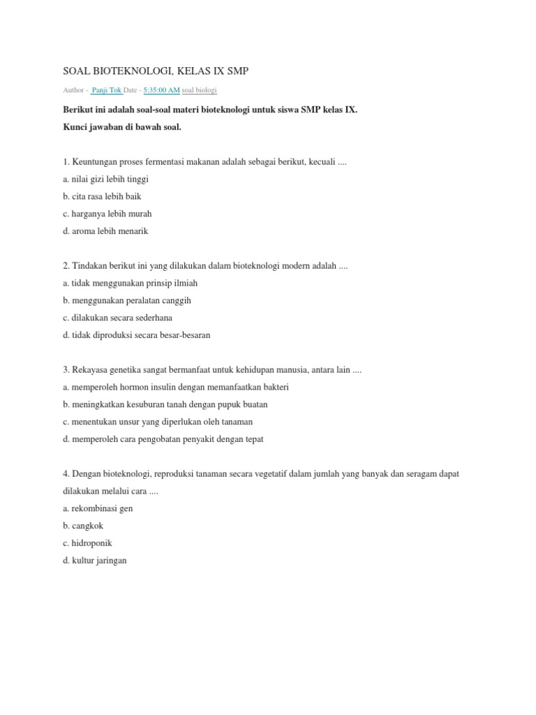 Contoh Soal Bioteknologi Kelas 9 Smp Soal Kelasmu