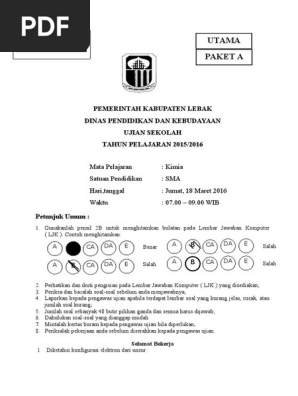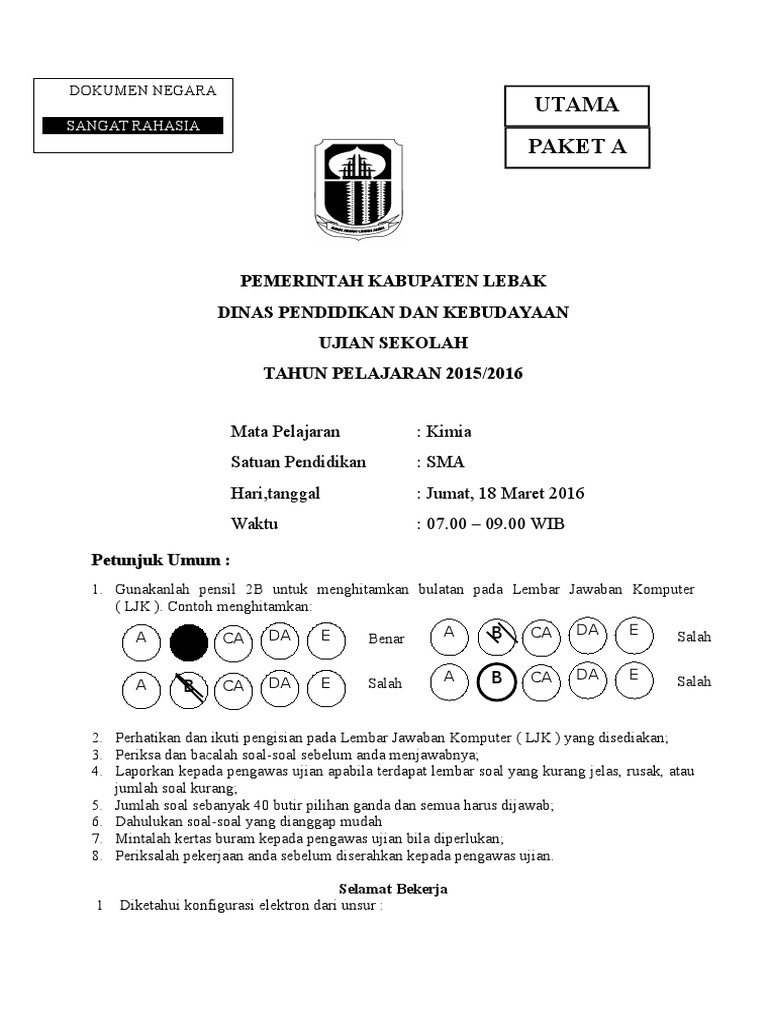 Berikut ini adalah contoh. So begini seluk-beluk UN Kimia 2016. Selain mapel Kimia tersedia juga mapel Bahasa Indonesia Fisika.