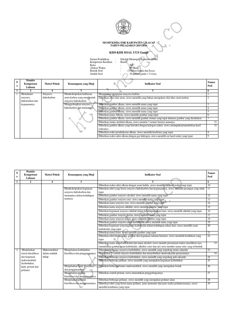Kisi Kisi Us Gasal Kimia Kelas Xii Tahun 2015 2016