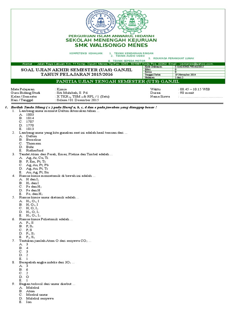 Soal Ujian Akhir Sekolah Kimia Smk Rismax