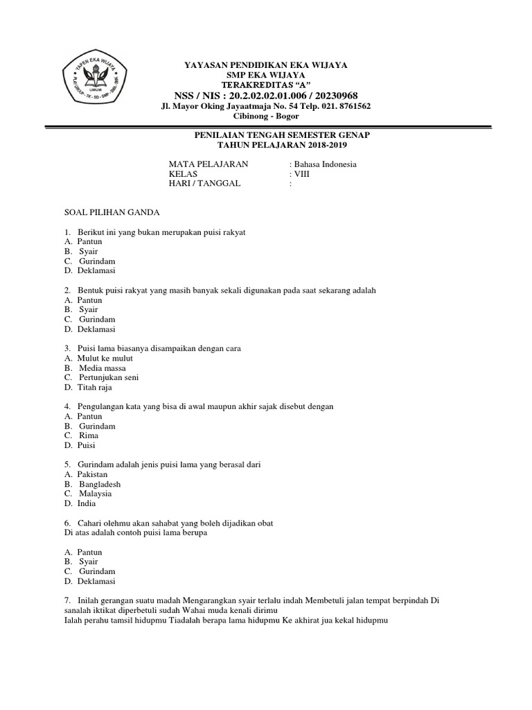 Soal puisi bahasa indonesia dan jawabannya kumpulan model soal ujian nasional.