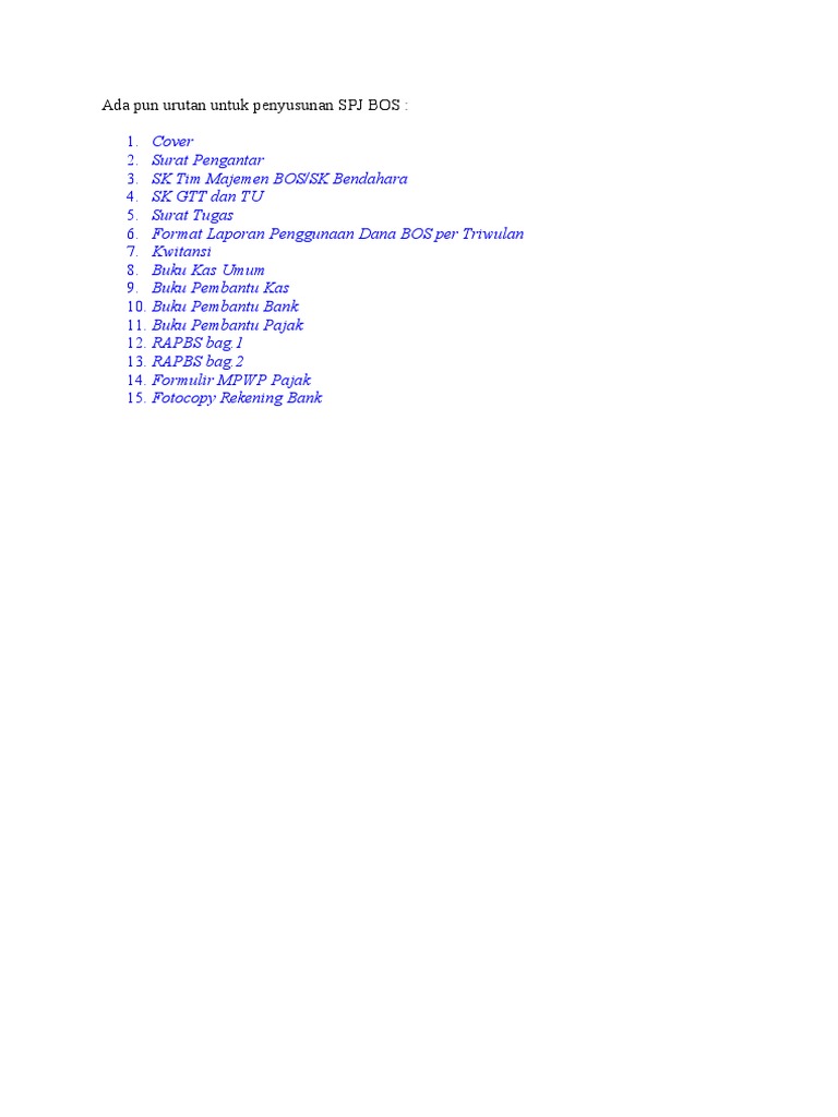 Urutan Untuk Penyusunan Spj Bos