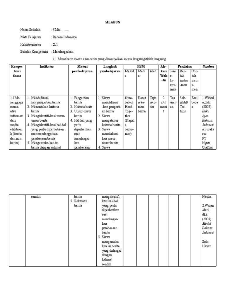 Silabus Bahasa Indonesia Sma Smk Kelas X Xi Xii Semester 1 Dan 2 Tahun Pelajaran 2018 2019 Model 7 Kolom Zuhri Indonesia