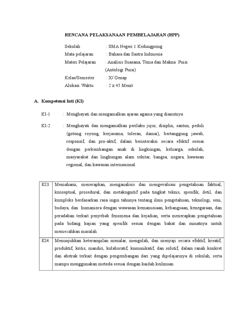 Rpp Bahasa Indonesia Kd 3 16 Kelas X Sma Semester Genap Pdf