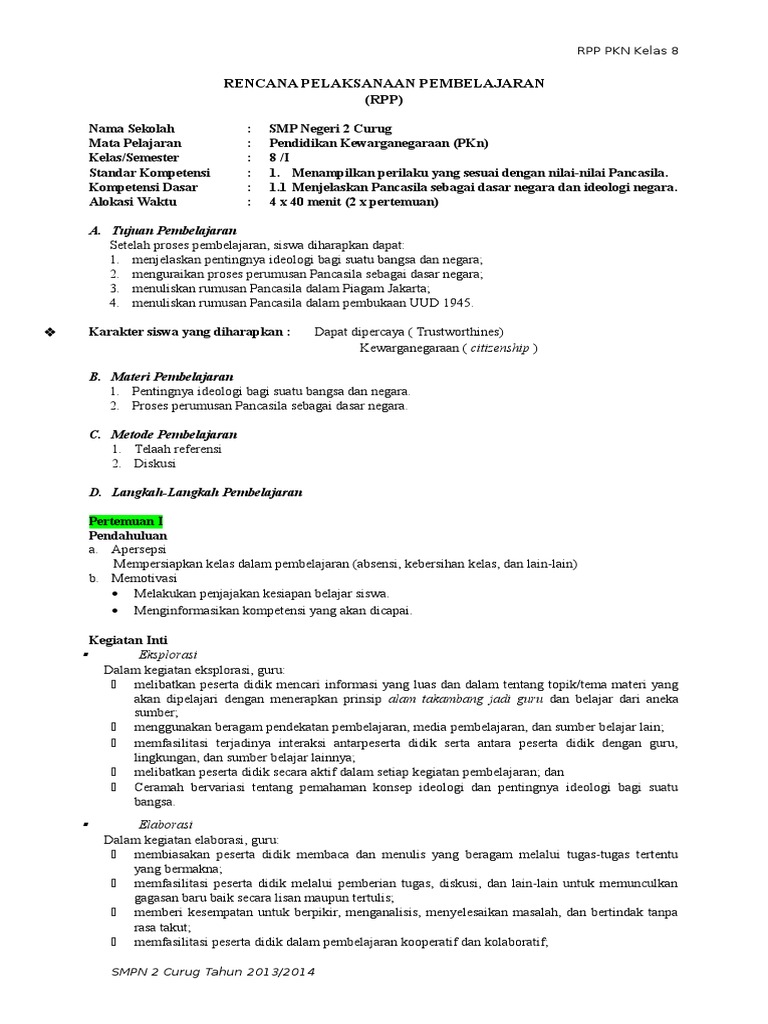 Rpp Pkn Kelas 8 Semester 1 Dan 2 Kurikulum 2013 Revisi Sekolah