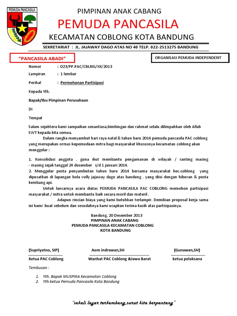 Proposal pemuda pancasila. 3 Dengan diadakannya pelantikan kepengurusan dapat berjalan dengan tepat dan sesuai job masing-masing pengurus. PROPOSAL LATMULA PROPOSAL SATUAN SISWALatihan PELAJARMula DAN MAHASISWA LATMULA PEMUDA PANCASILA KABUPATEN CIANJUR Membentuk Generasi Muda Pancasila Yang Loyal Terhadap Organisasi Membentuk Generasi Muda Pancasila Yang Loyal Terhadap Organisasi ayar Terkembang Surut Kita Berp LATAR BELAKANG Kader merupakan aset sebuah. Berikut data lengkap tentang Contoh Proposal Pengajuan Dana Pemuda Pancasila.
