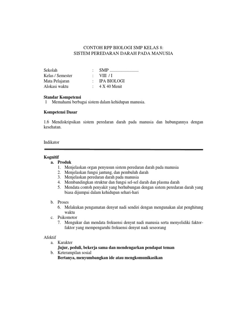 Contoh Rpp Biologi Smp Kelas 8