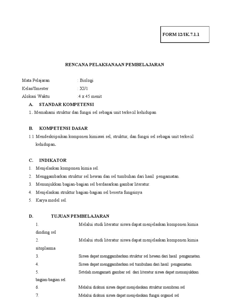 Rpp Biologi Kelas Xi Ipa Sem I
