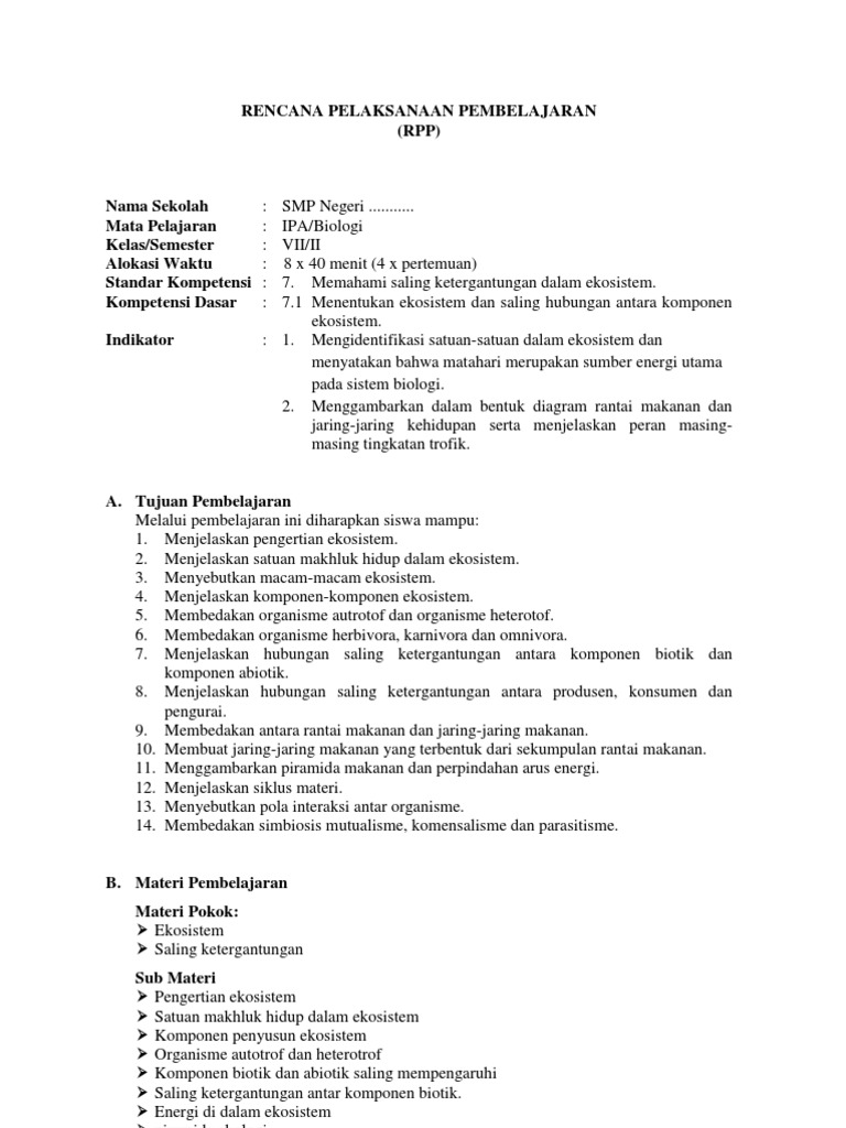 Rpp Ipa Biologi Smp Vii Semester 2