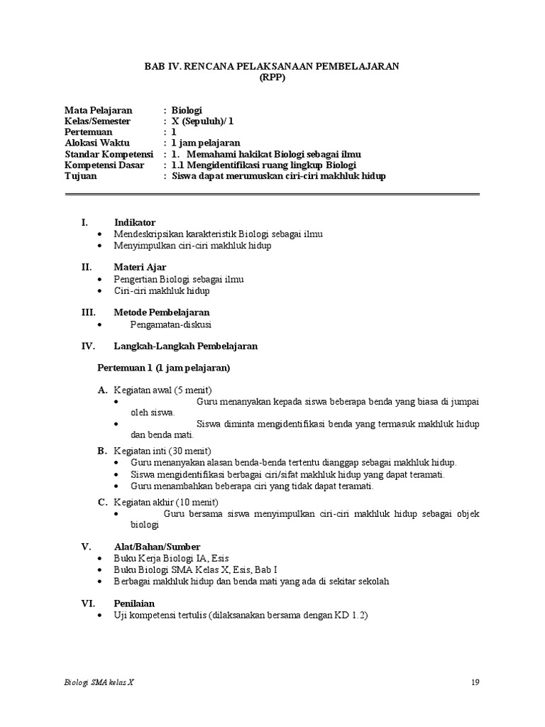 Rpp Biologi Kelas X Semester Ganjil