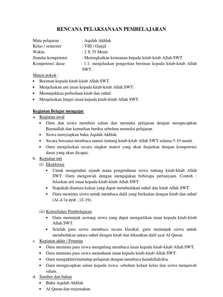 Rpp Kurikulum 2013 Aqidah Akhlak Mts Kelas Vii Semester 1. IX I Standar Kompetensi. Homepage Belajar Silabus Aqidah Akhlak Kelas 9 Semester 2.