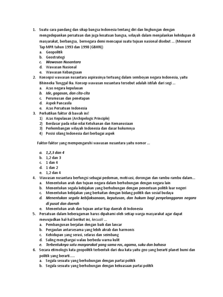 Menentukan segala kebijakan yang berkaitan. Wawasan Nusantara Dan Latihan Soal Jawaban Oleh admin Diposting pada 15 April 2020 16 April 2020 Wawasan Nusantara PPKN Kelas X Latihan Soal Ruangbimbelcoid. Kami mengumpulkan soal dan jawaban dari tts teka teki silang populer yang biasa muncul di koran kompas jawa pos koran tempo dll.