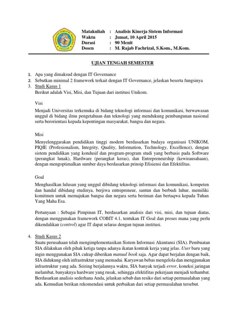 Manajemen Informatika Soal Uts Analisa Kinerja Sistem