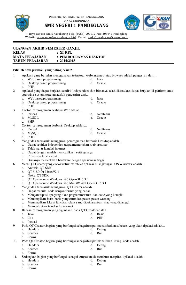 Soal Uas Pemrograman Desktop Kelas 11 Smk Semester Ganjil Tahun Ajara