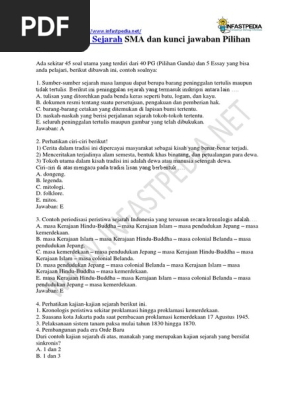Soal Usbn Sejarah Sma Dan Kunci Jawaban Pdf